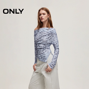 ONLY扎染一字肩修身长袖T恤