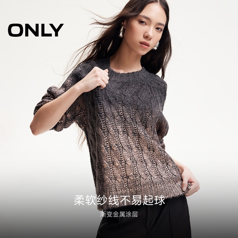ONLY冬季渐变设计感含绵羊毛圆领毛衣针织衫女|124413040