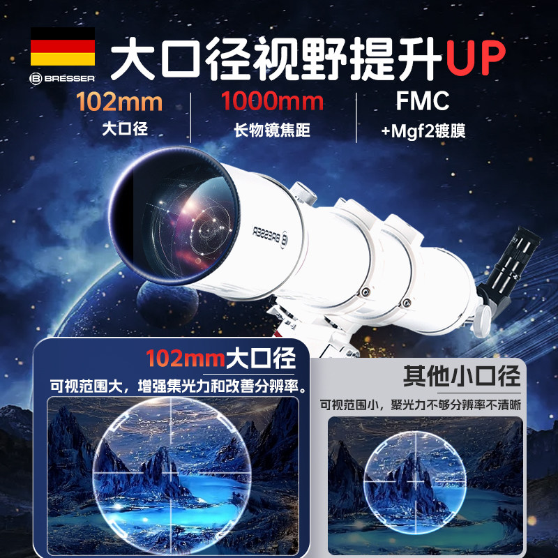 宝视德天文望远镜专业级高倍高清 【售价】:¥1539.00 【券后】:¥1369.00 【优惠券】:¥170 推荐理由:德国宝视德天文望远镜专业级高清寻星赤道仪,BRESSER-梅西耶双倍用料更高清,JWT经纬仪+双微调杆实现更精细的双向调节,手机/电脑摄录多种观测,让孩子充满兴趣 👉复制这条信息87¥ HU926 CRdgUmGLddM¥ 打开【手机淘宝APP】即可领券购买:/