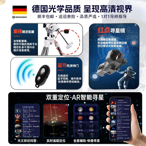 德国宝视德天文望远镜专业级高清寻星赤道仪,BRESSER-梅西耶双倍用料更高清,JWT经纬仪+双微调杆实现更精细的双向调节,手机/电脑摄录多种观测,让孩子充满兴趣