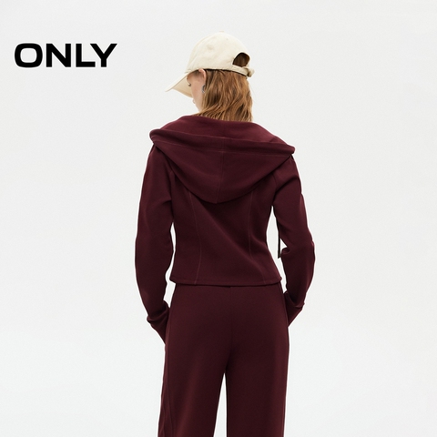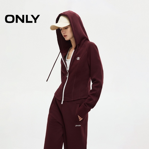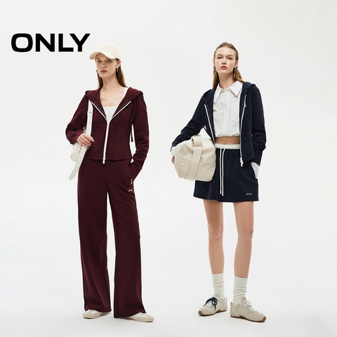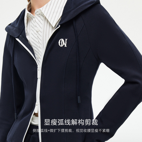 ONLY2026春季新款活力撞色双向拉链设计连帽长袖修身运动卫衣女