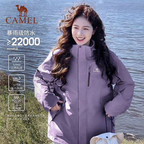 【月光蓝】骆驼户外冲锋衣三合一女防水滑雪服冬季旅游蓝色外套男