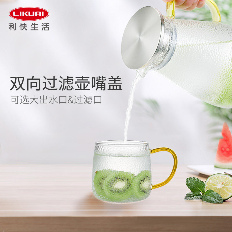 利快锤纹冷水壶加厚玻璃水壶大容量凉水壶家用茶壶凉白开水壶水杯