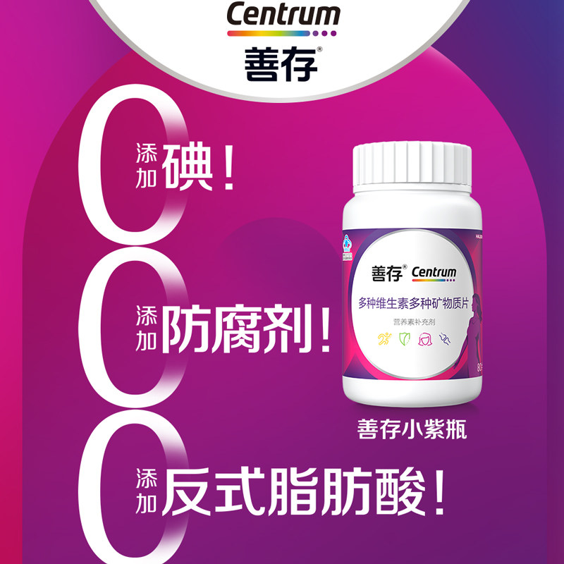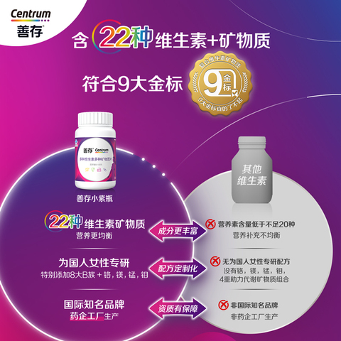 善存女士小紫瓶多种矿物质复合维生素22种营养元素80片烟酰胺钙片