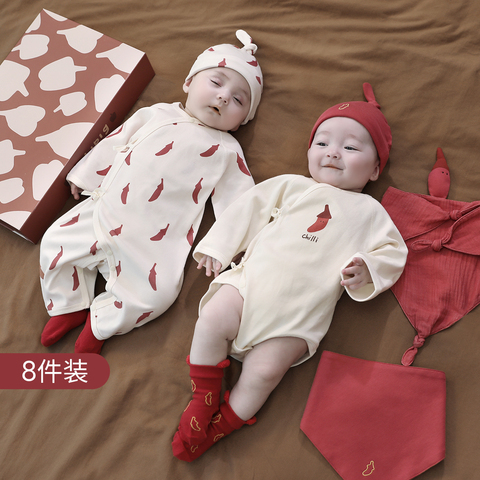 新生儿婴儿礼盒秋冬连体衣礼物满月送礼衣服红色宝宝过年拜年服