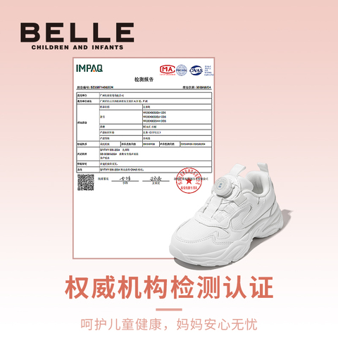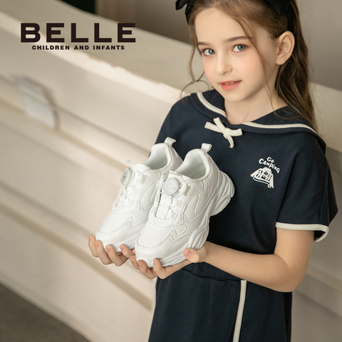 百丽童鞋女童小白鞋2026春季新款男童运动鞋儿童旋扣中大童老爹鞋