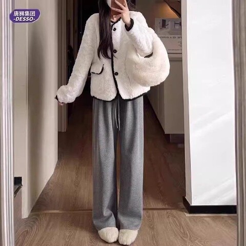 唐狮旗下DESSO秋冬新款糯米裤高腰垂感宽松加绒直筒阔腿裤