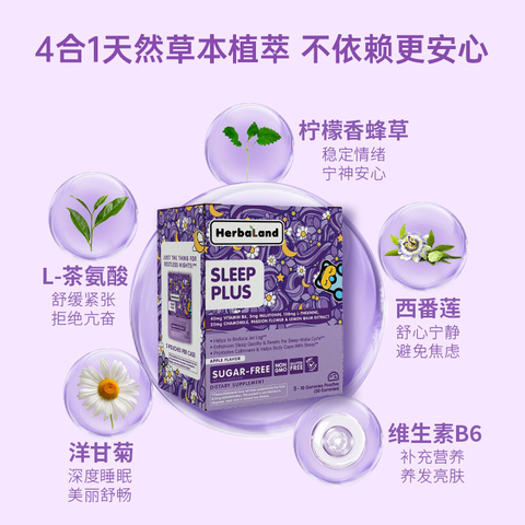 【直播】Herbaland禾宝蓝褪黑素软糖睡眠片助眠茶氨酸50粒/盒