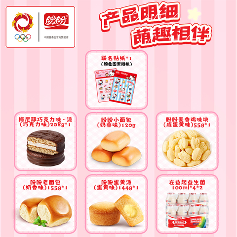 马上过年了!送盼盼好事常相伴! 盼盼•HelloKitty联名零食礼盒1482g 36.9亓 从小吃到大的牌子,还带提手超方便! 麦乐鸡块,老面包,巧克力派等经典美味一盒满足!