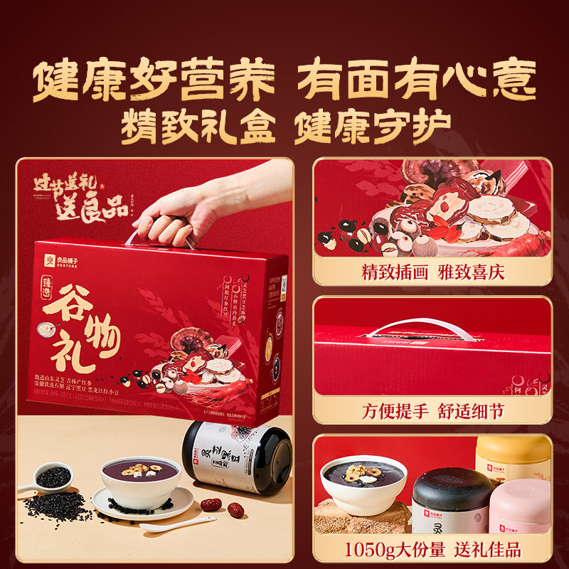 良品铺子臻选谷物礼1050g灵芝石斛免煮食养谷物粉年货礼盒送长辈