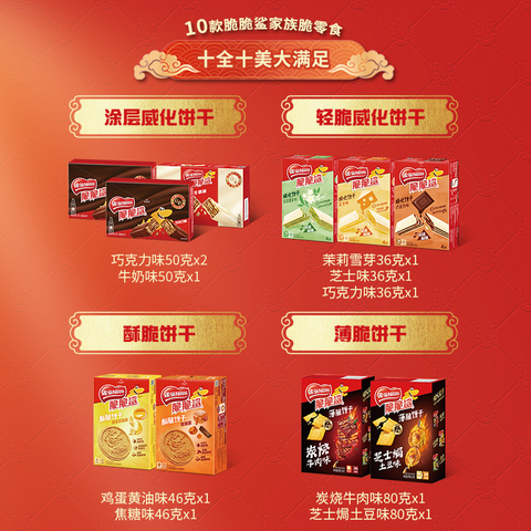 立减14淘金币5.06到手44.84消费券后39.47【新年礼盒】雀巢脆脆鲨巧克力味威化什锦饼干礼盒,多种口味组合,满足不同口味需求,适合送礼自用,年货必备!