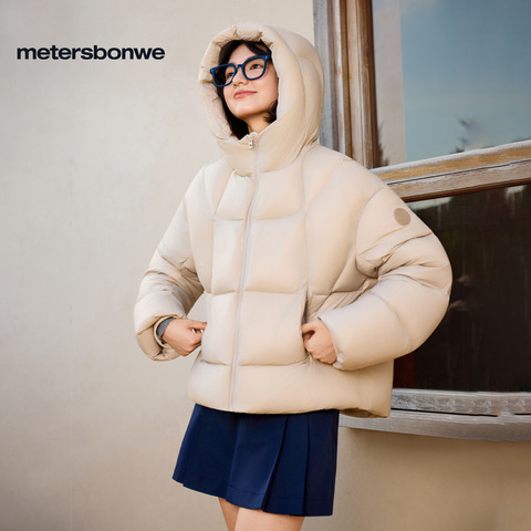 美特斯邦威羽绒服女款秋冬季连帽加厚保暖简约潮流外套短款