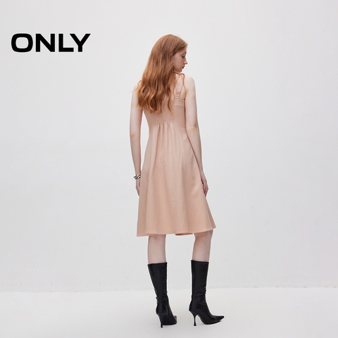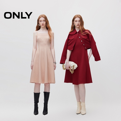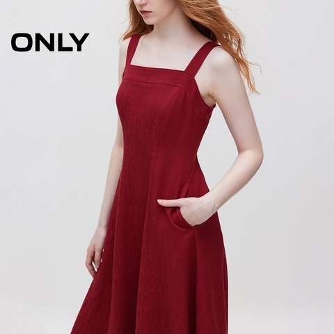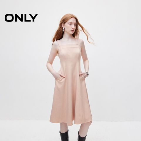 ONLY夏季天鹅法式大方领复古优雅收腰A字裙吊带裙中长裙连衣裙女