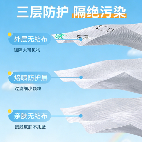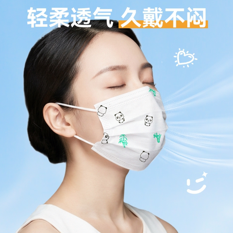 【叠掏琻币12.47亓】卡通熊猫口罩,三层防护透气不闷!