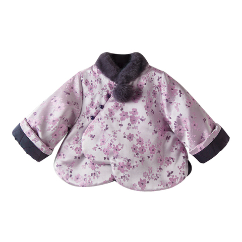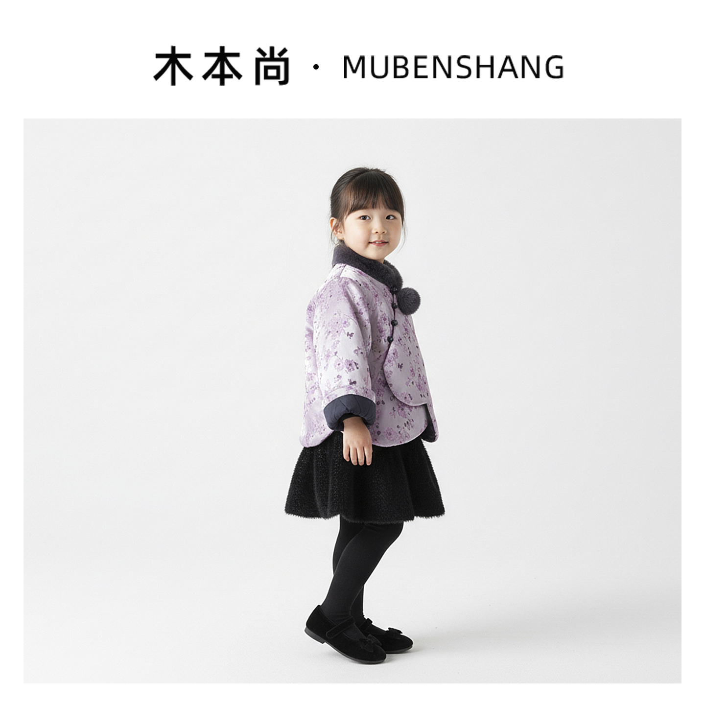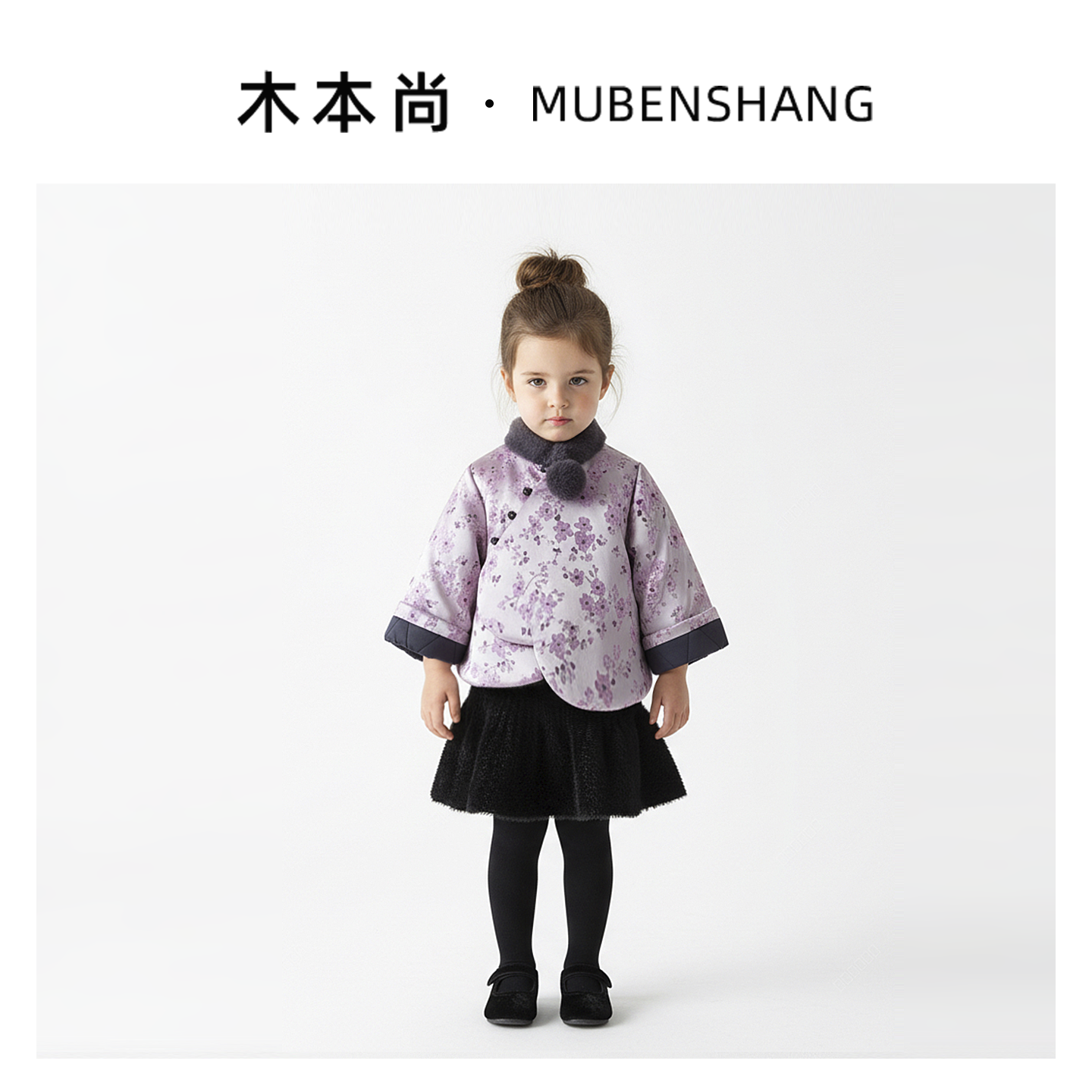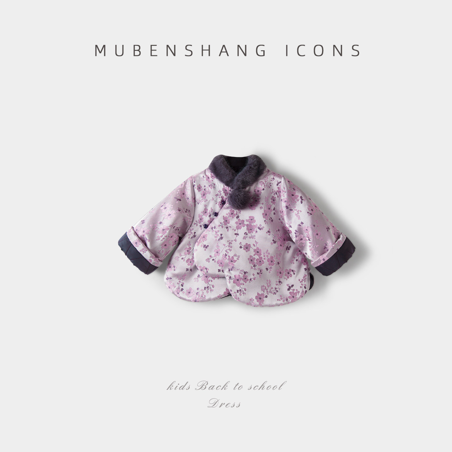 木本尚女童国风外套夹棉加厚宝宝过年衣服提花刺绣拜年服儿童冬装