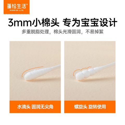蓬松生活婴儿双头棉签,专为宝宝设计,柔软细支,安全不伤耳鼻。拍2件仅需9.9元,母婴必备好物!