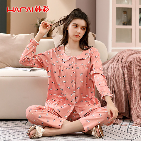 新款春秋季睡衣女秋冬纯棉居服套装,超赞!