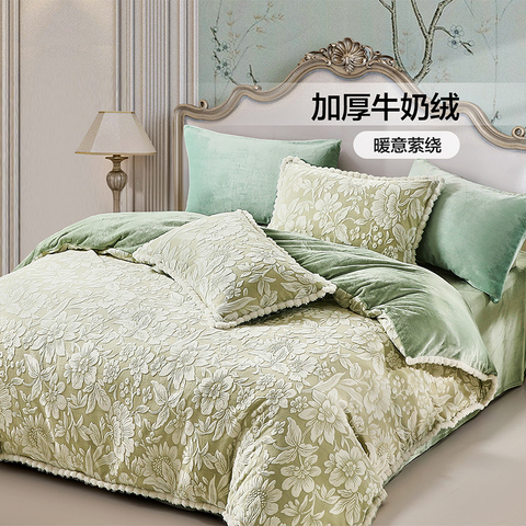 富安娜牛奶绒四件套温暖上线!亲肤柔软如云朵包裹,冬季加厚加绒设计,保暖升级不静电~法兰绒床单贴身舒适,珊瑚绒被套细腻柔滑,冬日暖意一步到位~