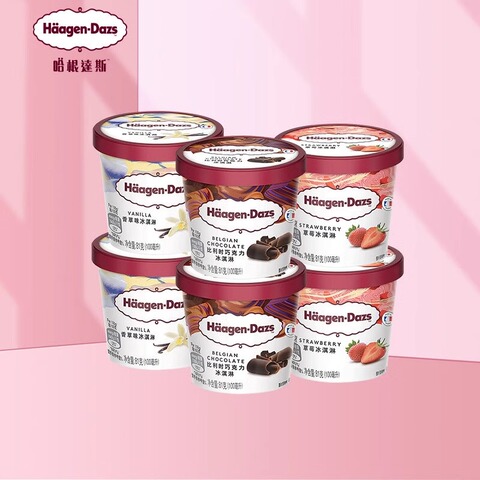 哈根达斯冰激凌香草草莓巧克力81g*6杯礼盒