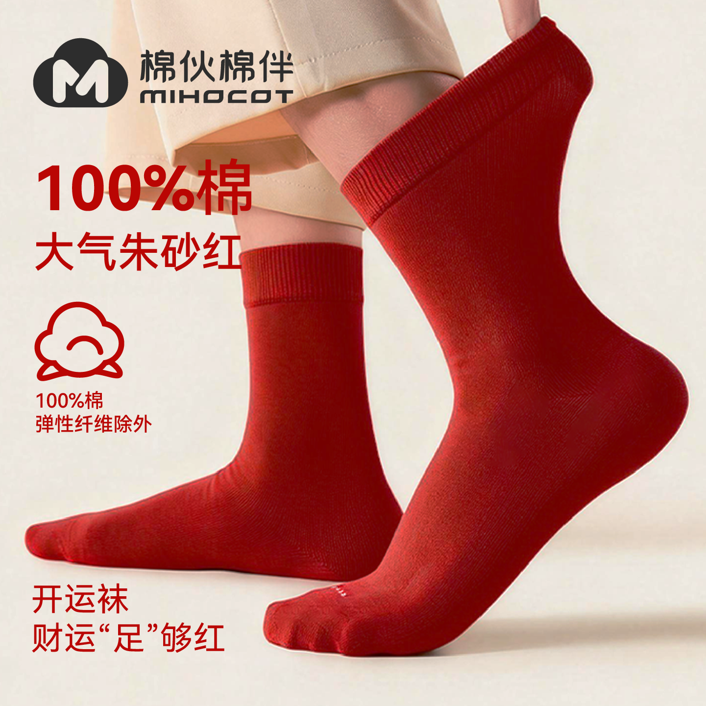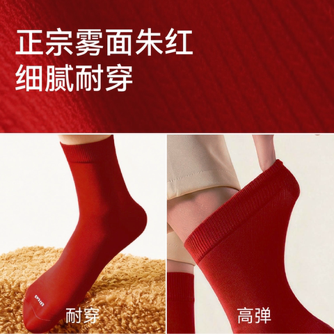 三枪袜品红袜子男女本命年