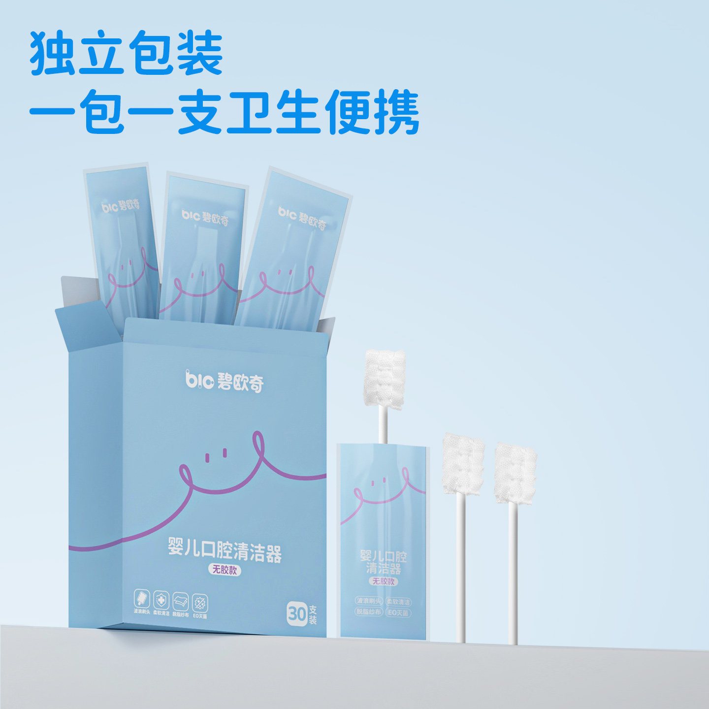 【原价22.7-券14-淘金币1.13-首单1=到手价3.7/30支】碧欧奇无胶纱布棉棒,新生宝宝舌苔口腔清洁超安心