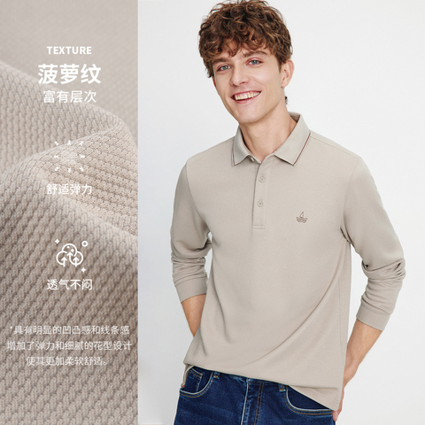 38¥ HU071 wd76UmY3YPB¥ https://m.tb.cn/h.7wabSEh Navigare意大利小帆船通勤长袖POLO衫男士春秋新款纯色翻领T恤