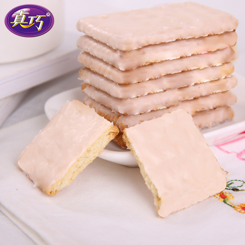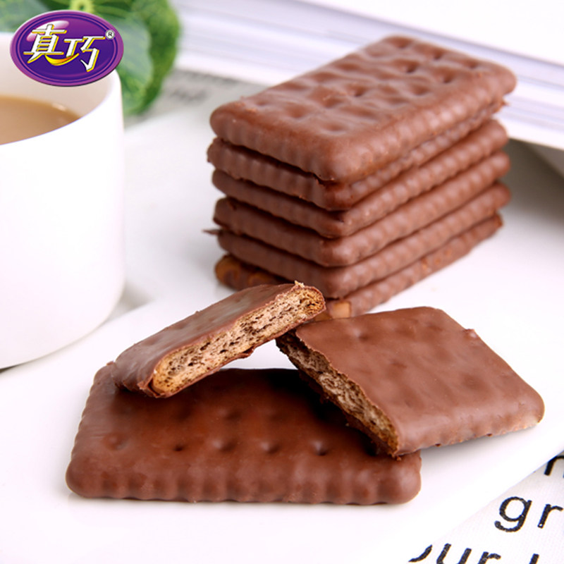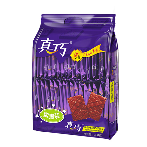 真巧涂层饼干308g巧克力味,草莓味休闲零食食品糕点心