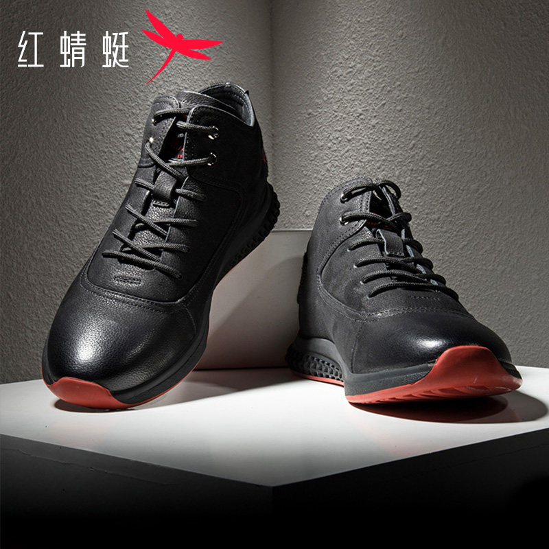 红蜻蜓男鞋2025冬季户外高帮棉鞋