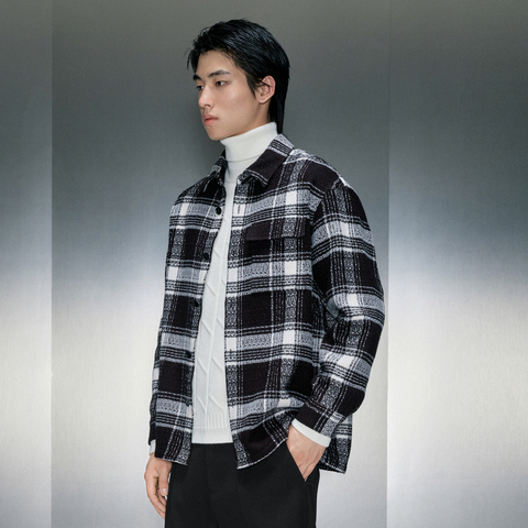 【衬衫清仓】GXG奥莱男装衬衫格纹衬衫翻领中长袖衬衫春秋