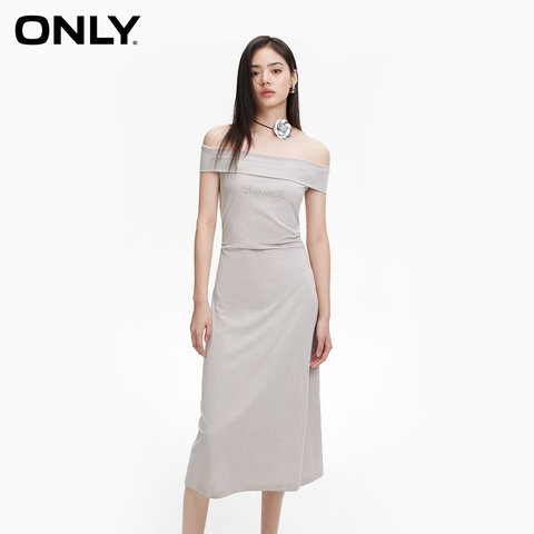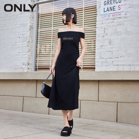 【ONLY奥莱】秋冬简约百搭烫钻一字领中长款连衣裙女|124161015