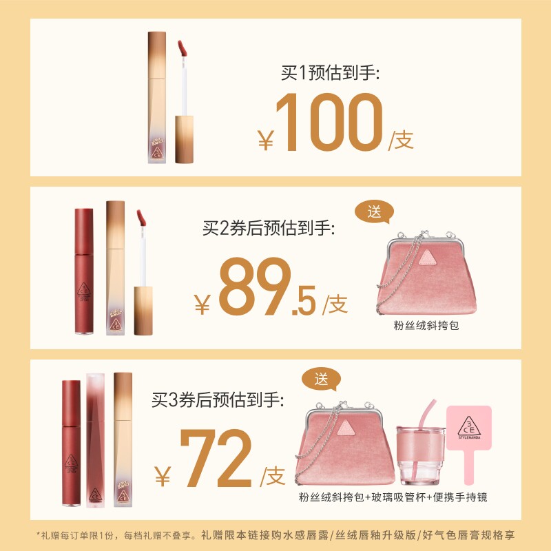 3CE丝绒唇釉口红哑光持久 【售价】:¥263.00 【券后】:¥174.00 【优惠券】:¥89 推荐理由:【淘金币抵扣10.66元,到手仅163左右】【赠粉丝线斜挎包】这款第二代丝绒唇釉真的是秋冬本命!丝绒质地巨丝滑,上嘴完全不卡纹、不拔干,轻轻一抹就能晕开,显色度超高还不挑皮。【退货宝】 👉复制这条信息69¥ CZ057 kG78UNQbf4V¥ 打开【手机淘宝APP】即可领券购买:/