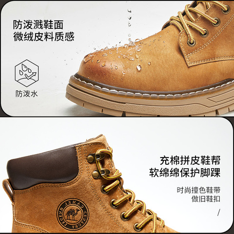 48¥ CZ356 tdAWUN6nhFf¥ https://m.tb.cn/h.7wISJDs 王俊凯同款骆驼马丁靴男冬季高帮保暖大黄靴情侣真皮户外工装靴女