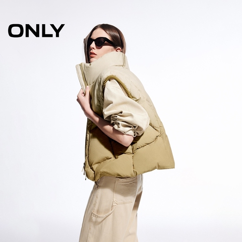 ONLY冬季90白鸭绒时尚设计感立领羽绒马甲女|124452004