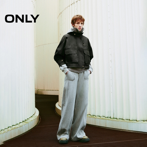 ONLY2026春季新款挺括立体领口底摆抽绳宽松落肩纯色短款外套女