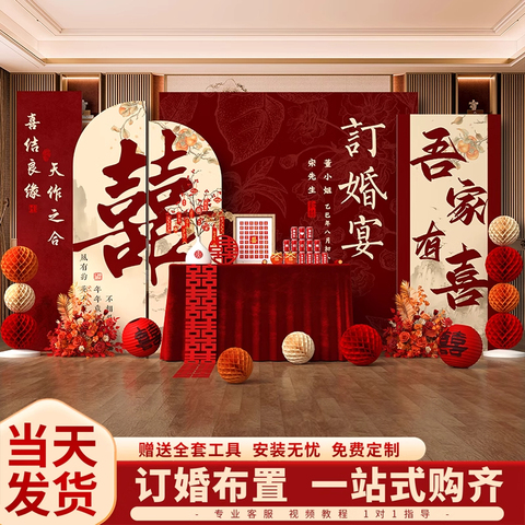 49¥ HU591 BwRwUMwBKTm¥ https://m.tb.cn/h.7B6ptlE 2026订婚宴场景布置装饰新中式喜字结婚摆件全套餐摆台kt板背景墙