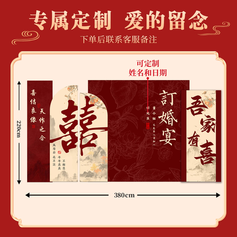 2026订婚宴场景布置装饰新中式喜字结婚摆件全套餐摆台kt板背景墙