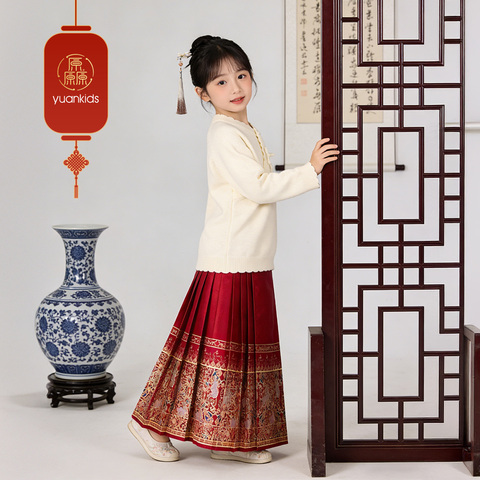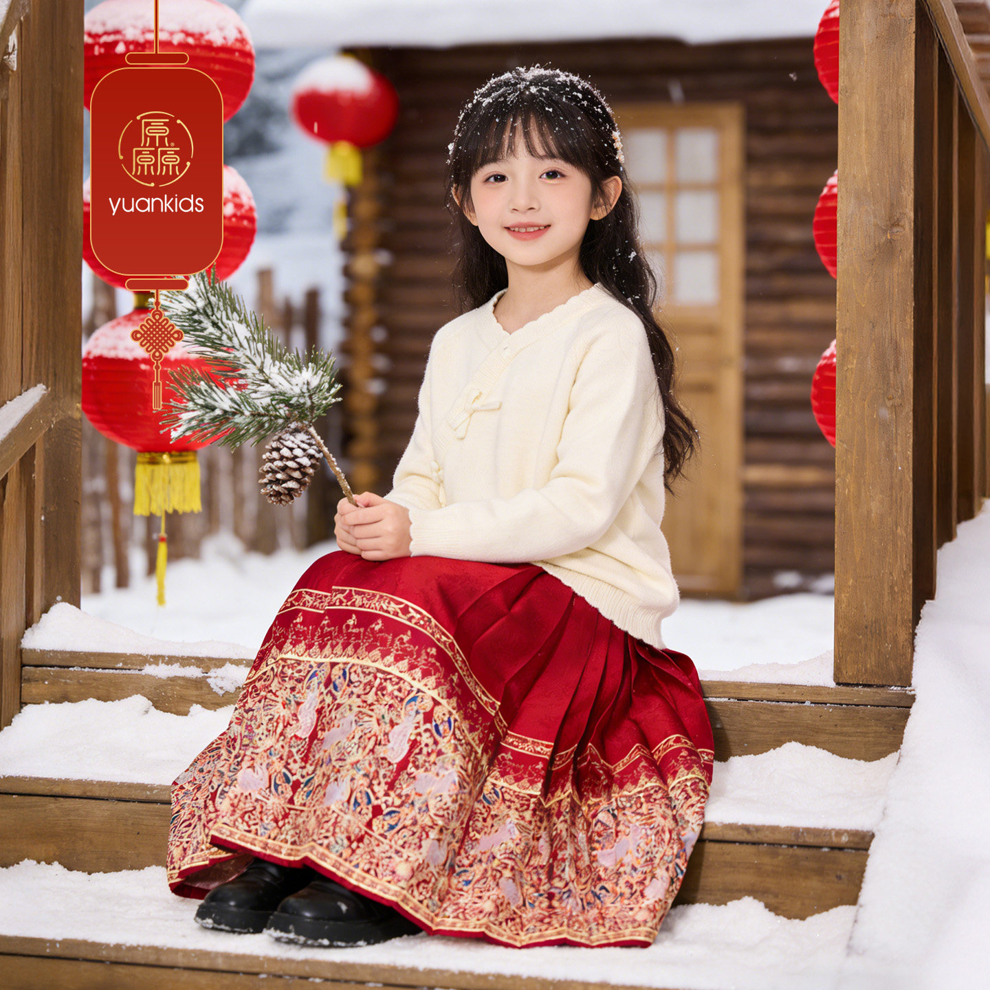 2026冬季新款女童套装,新中式针织衫配马面裙,保暖又时尚,中大童适用,