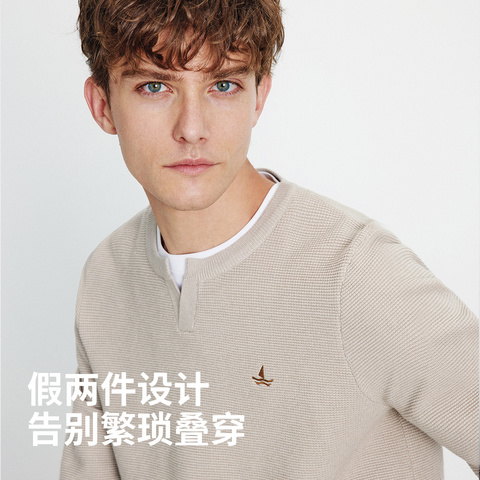 29¥ HU071 fXh6UmBq014¥ https://m.tb.cn/h.7xSFDhm Navigare意大利小帆船休闲通勤假两件针织衫男春季华夫格套头毛衣