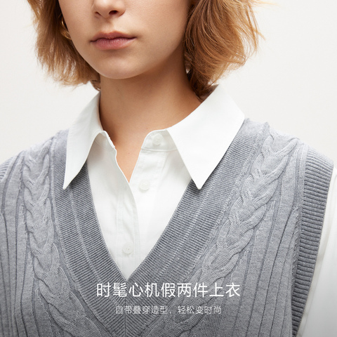 57¥ HU071 zffxUmbBG13¥ https://m.tb.cn/h.7wj1WBr ONLY2025冬季新款通勤显瘦立体拼接正肩假两件叠穿坑条马甲衬衫女