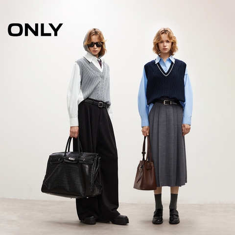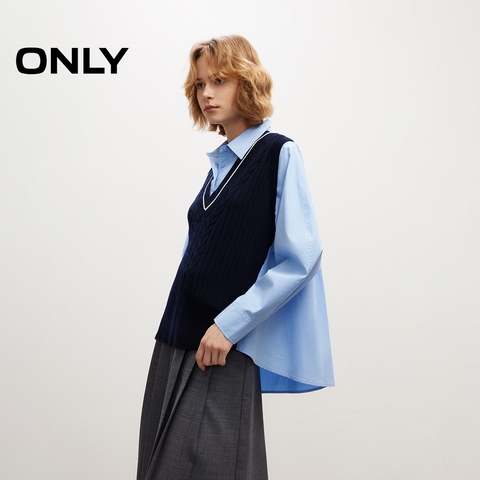ONLY2025冬季新款通勤显瘦立体拼接正肩假两件叠穿坑条马甲衬衫女