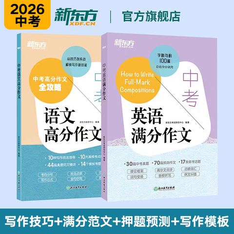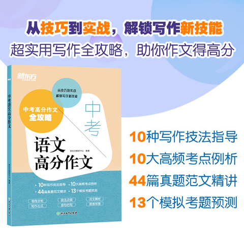 2026新版 新东方中考语文高分作文 考点押题预测真题素材写作技巧中考满分作文书万唯名校模考初中生初一优秀范文精讲背诵模板英语