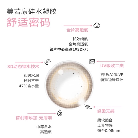 【拍两件更划算!原价120/2件,活动到手63.4/2件!+伴侣盒+清洁湿巾】美若康辻花迷漫系列月抛,8倍高透氧硅水凝胶月抛,水润轻薄!无异物感,很自然,get清透无辜美眸!速囤!!