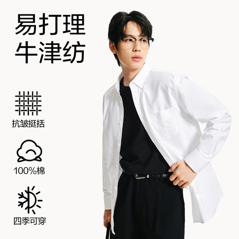 网易严选纯棉长袖衬衫男高级感2026年春季衬衣牛津纺休闲外套男