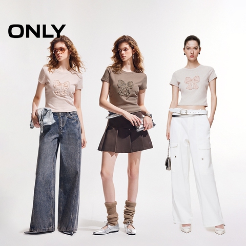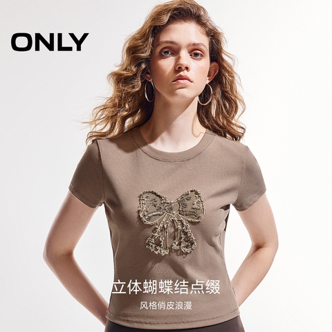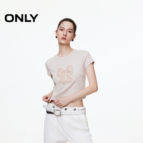 ONLY2025夏季新款蝴蝶结收腰辣妹正肩短袖美拉德系甜美T恤女