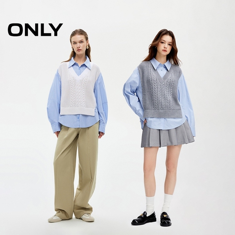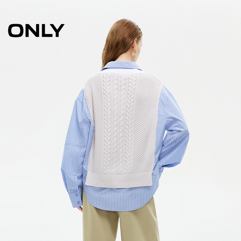 ONLY2026春季新款学院风针织马甲假两件设计翻领落肩长袖衬衫女