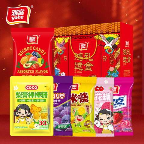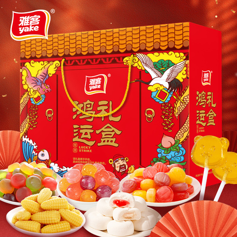 雅客鸿运礼盒果浆夹心硬糖橡皮糖棉花糖粟米烧软糖梨膏棒棒糖组合