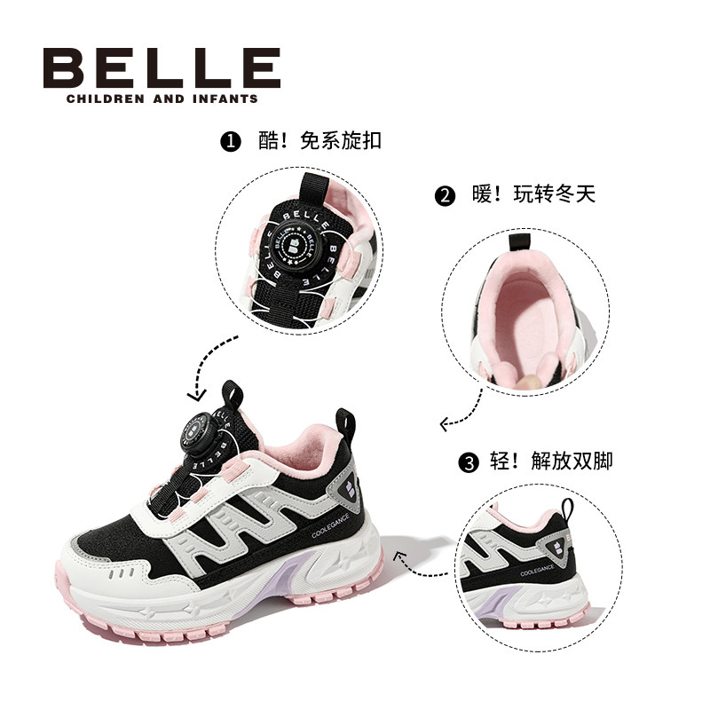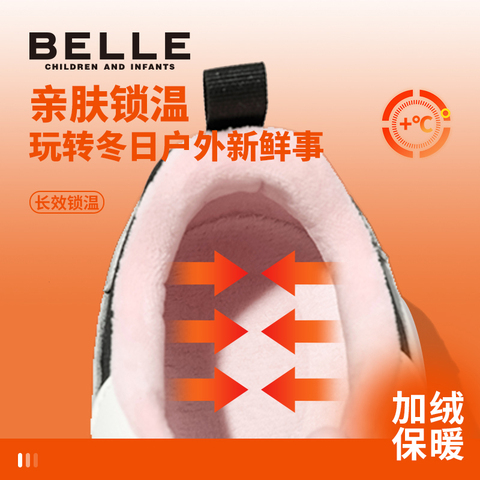 百丽童鞋男童二棉鞋冬季新款女童运动鞋跑步鞋儿童加绒保暖户外鞋