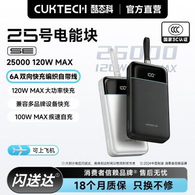 酷态科25号电能块SE电芯25000毫安自带线电能块可上飞机高铁充电