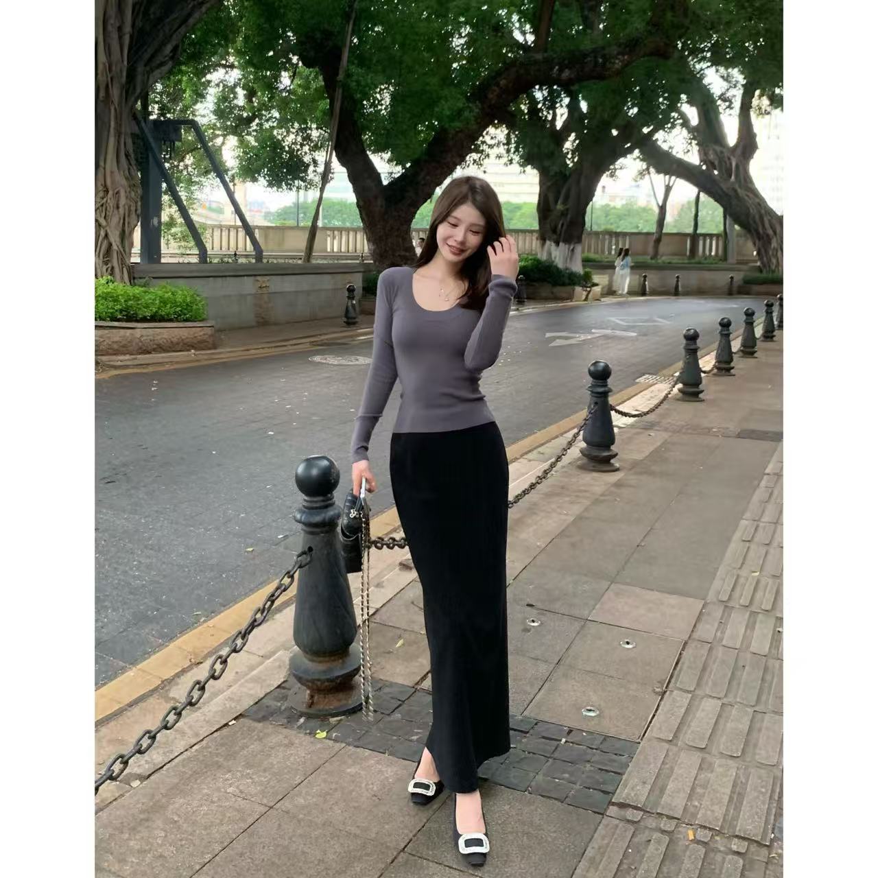 弹力半身裙2025秋冬新款大码显瘦休闲气质时尚直筒a字中长裙子女