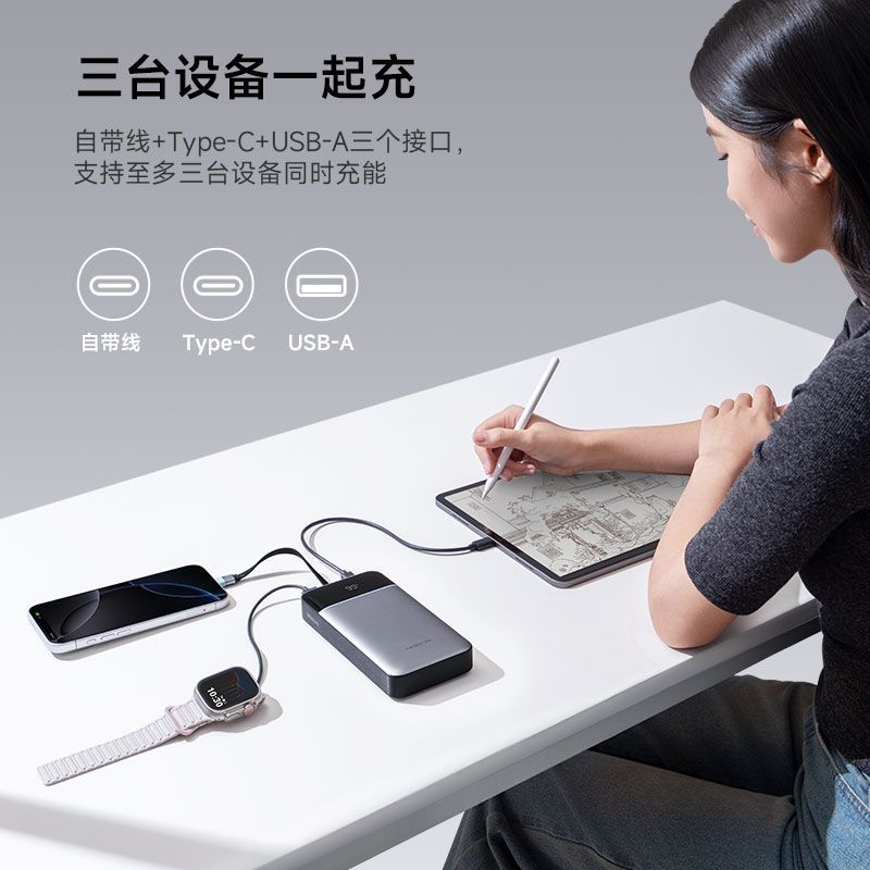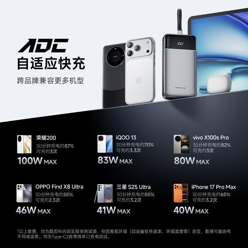 酷态科25号电能块SE电芯25000毫安自带线电能块可上飞机高铁充电